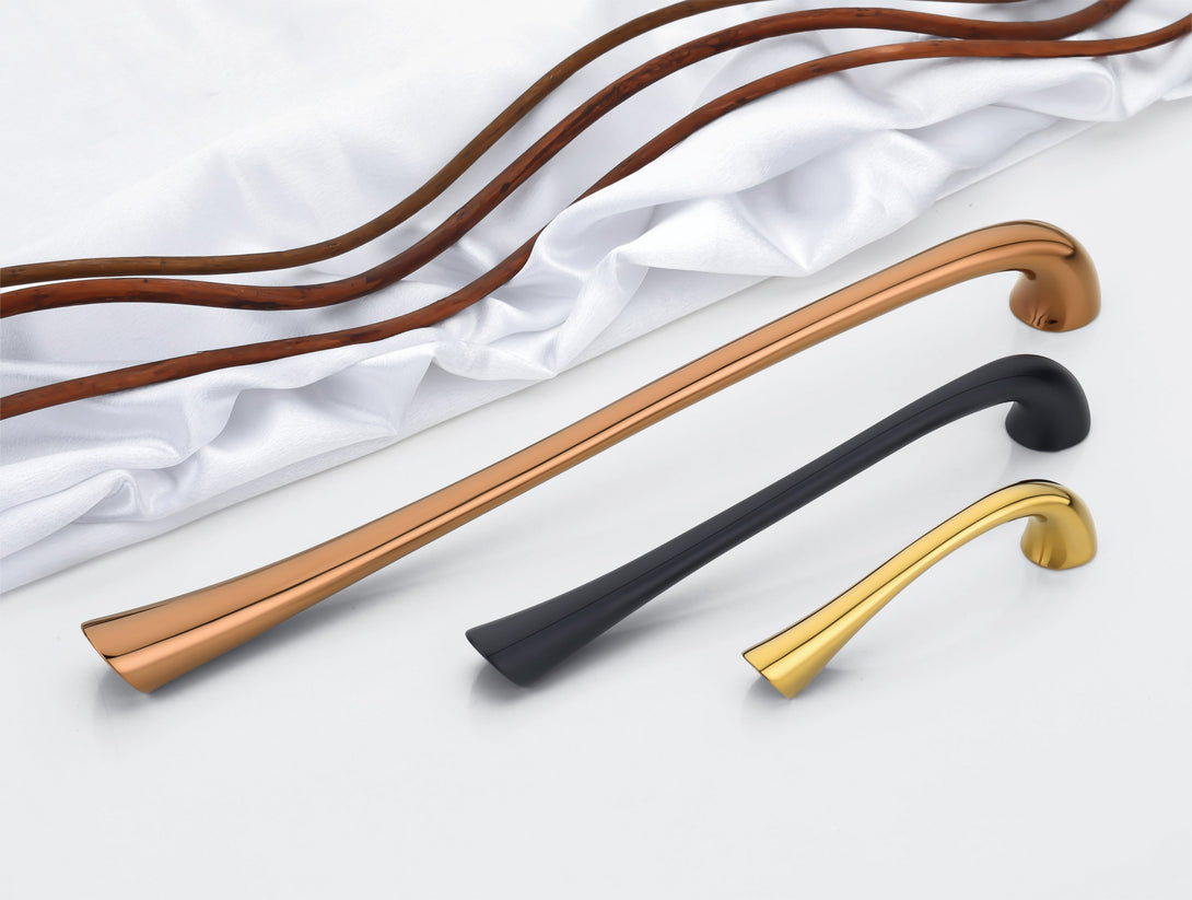 Crafted with meticulous attention to detail, these handles boast a unique, sweeping form that makes them a focal point in any room. They are available in three luxurious and durable finishes: the brilliant shine of PVD Gold; the warm and opulent PVD Rose Gold; and the sleek, contemporary Z Black (Matte Black). The PVD (Physical Vapor Deposition) coating ensures exceptional durability, scratch resistance, and a vibrant, long-lasting finish. With a versatile range of hole center dimensions – 96MM, 192MM, 320MM, and 420MM – you can find the perfect size to complement various furniture scales, from smaller accent pieces to grand wardrobe panels, ensuring a cohesive and high-end design.