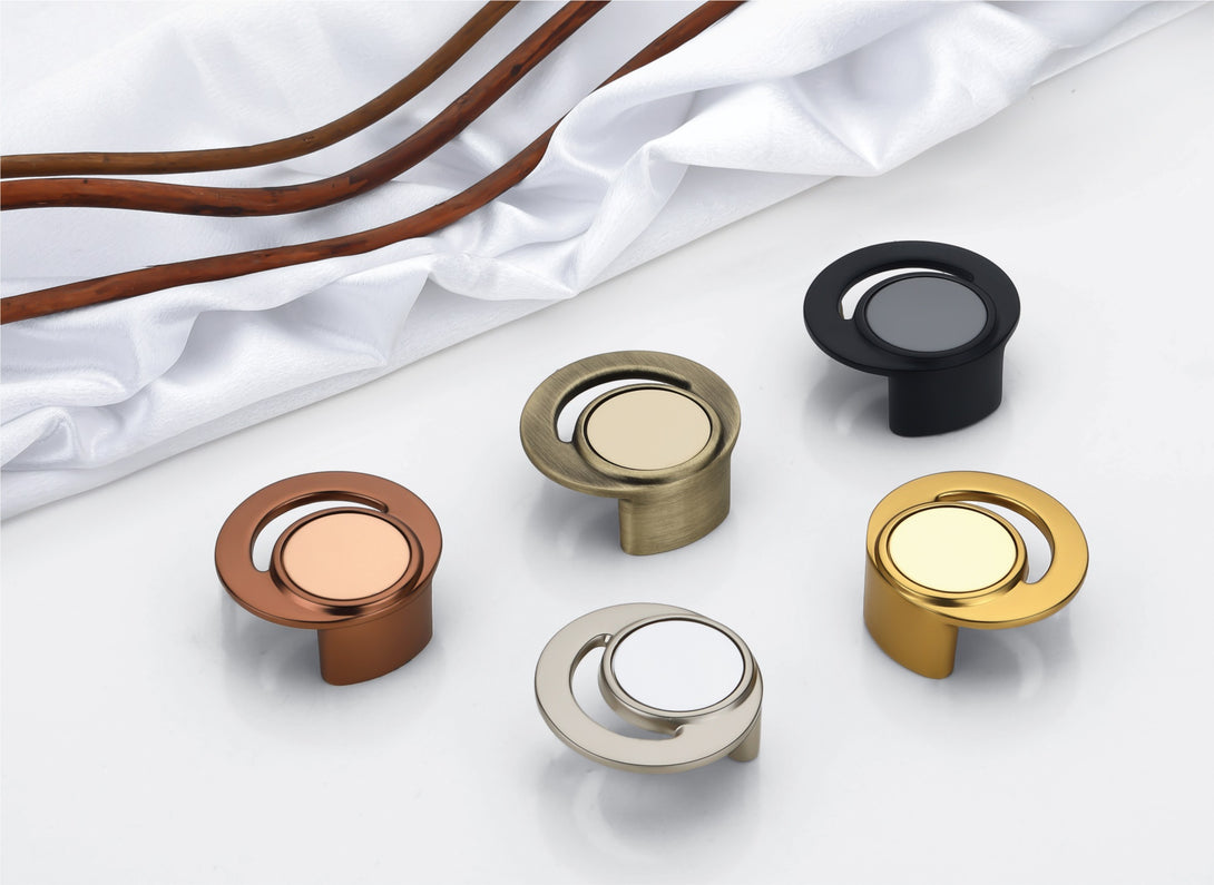 Crafted for durability and a comfortable grip, these knobs boast a smooth outer ring with a subtle, yet eye-catching, inner detail that adds depth and character. They are available in a comprehensive range of popular and resilient finishes: a rich Antique Brass with a Gold accent; a brilliant Gold with a lighter gold accent; a warm Rose Gold with a matching accent; a sleek Satin-CP (Satin Chrome or Satin Pearl) with a lighter satin accent; and a bold Z.Black (Matte Black) with a contrasting grey or black accent. These diverse color options ensure a perfect match for any decor, enhancing both the aesthetic and functionality of your furniture.
