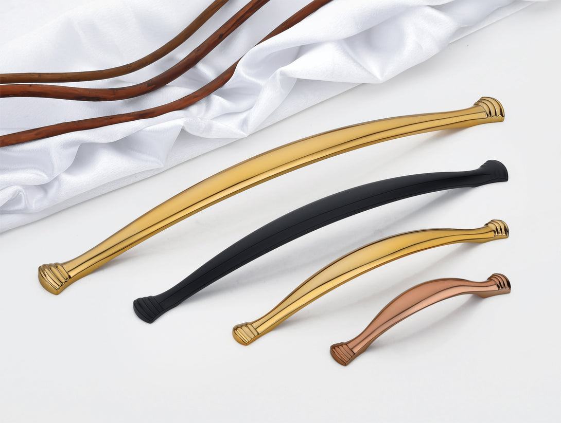Elevate your furniture with the sophisticated detailing of our Modern Curved Cabinet & Wardrobe Handles, featuring distinctive textured end caps. Sold individually, these elegant pull handles combine a classic bowed form with contemporary ribbed or fluted accents at the mounting points, perfect for upgrading kitchen cabinets, wardrobe doors, dresser drawers, and custom furniture pieces. Their unique design adds both visual interest and refined style to any interior.