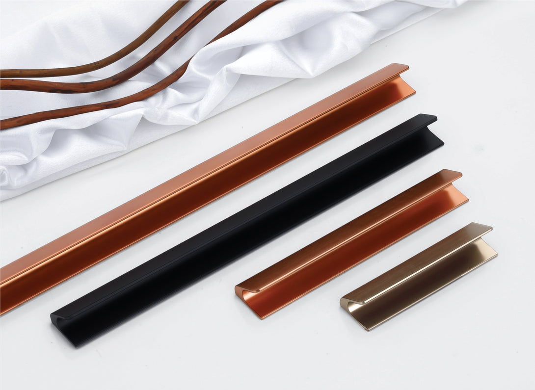 Crafted for durability and a smooth finish, these handles feature a subtle L-shaped or G-shaped profile that allows for easy grasping without protruding significantly. They are available in three sophisticated finishes: the warm luxury of Rose Gold; the refined and resilient SS Anodized (Stainless Steel Anodized); and the contemporary textured Black (Sand Blasting). With an extensive range of hole center dimensions – 96MM, 160MM, 288MM, 576MM, and 896MM – you can find the perfect size to integrate flawlessly with any cabinet, drawer, or wardrobe panel, ensuring a cohesive and streamlined design.