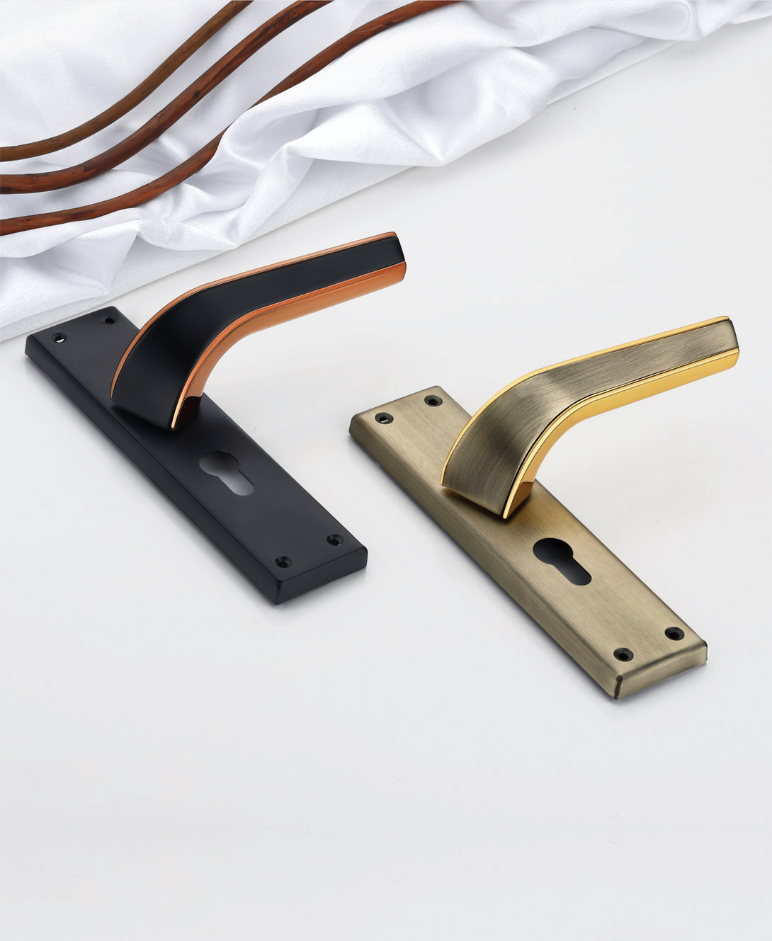 Antique+Gold: A timeless pairing that showcases an antique-finished plate (reminiscent of aged brass or bronze) with a gleaming gold lever, offering a rich, classic, and opulent appearance.