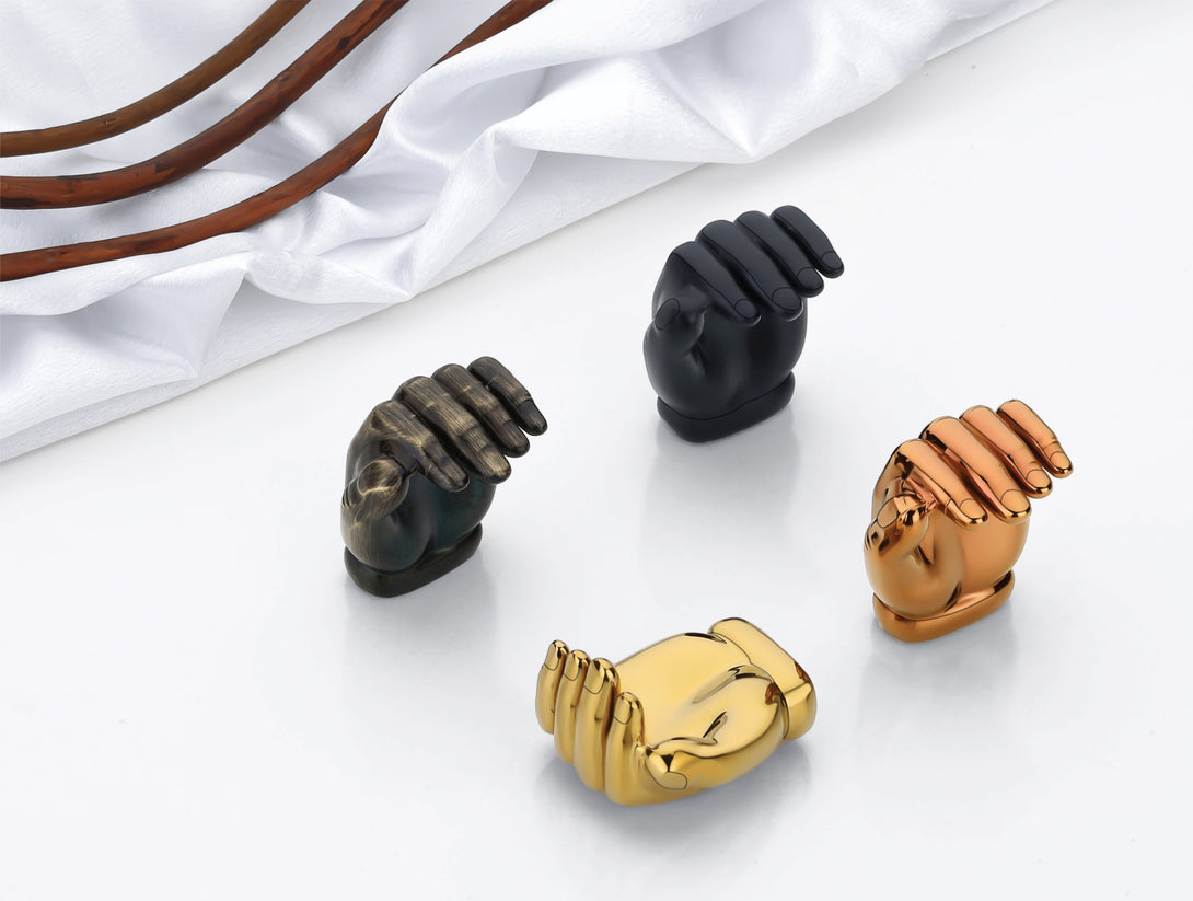 These Unique Clenched Fist Drawer Knobs are an excellent choice for those seeking to infuse their spaces with individuality, artistic flair, and practical functionality. Their robust construction and range of eye-catching finishes make them a perfect statement piece for any furniture upgrade or new build, effortlessly enhancing both the utility and visual appeal of your living environment.